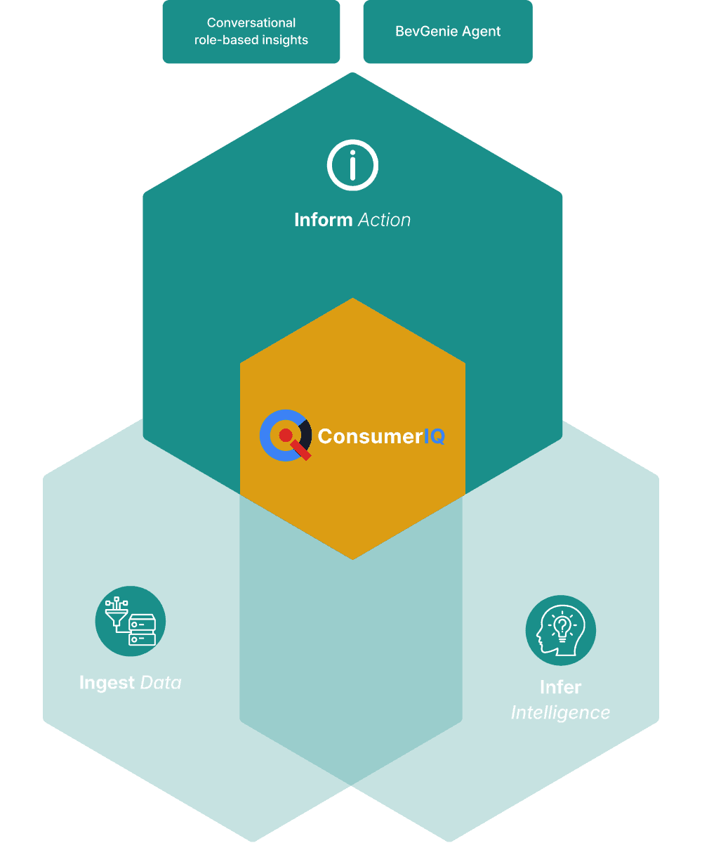 ConsumerIQ™ is the unified data and intelligence platform that brings together the beverage industry's fragmented signals and powers BevGenie to answer complex commercial questions instantly.
